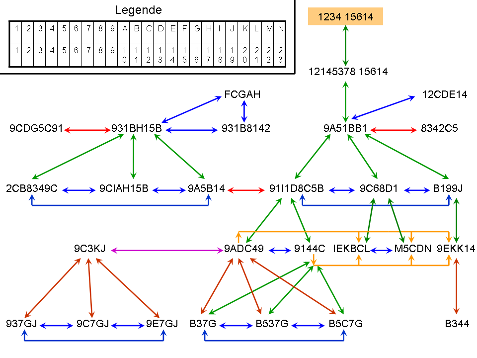 Hier habe ich einen Stammbaum einer berühmten Familie auf ziemlich gemeine Art und Weise verschlüsselt. Es besteht kein Anspruch auf Vollständigkeit, nur die Wichtigsten Personen sind enthalten! Insgesamt kommen 23 unterschiedliche Buchstaben vor, die mit den Zeichen "1" bis "N" gekennzeichnet sind. Gleiche Zeichen bedeuten logischerweise gleiche Buchstaben. Ich möchte nun gerne folgendes Wissen: